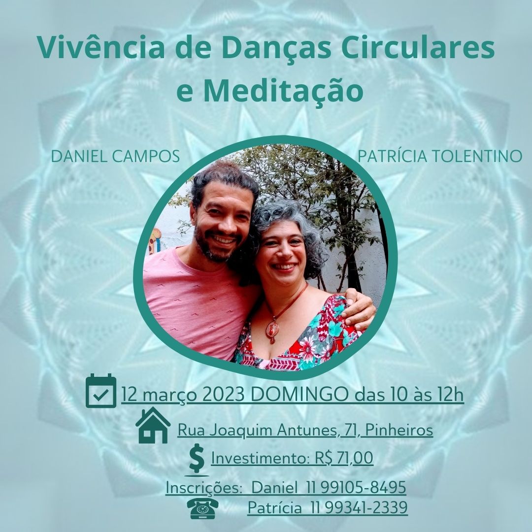 Atividade do mês de março: Vivência de Danças Circulares e Meditação. Próximo domingo, dia 12/03/23 às 10h em Pinheiros.